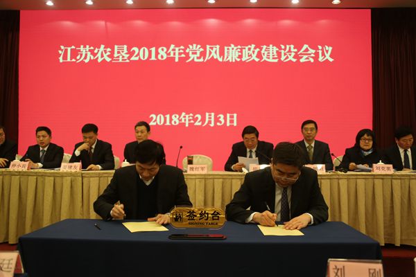 2月3日下午,集團公司在南京召開2018年黨風(fēng)廉政建設(shè)會議,分析墾區(qū)黨風(fēng)廉政建設(shè)形勢,部署2018年黨風(fēng)廉政建設(shè)任務(wù)。集團公司黨委書記、董事長魏紅軍作了講話,并與直屬企業(yè)黨委負責(zé)人逐一簽訂黨風(fēng)廉政建設(shè)責(zé)任狀,黨委副書記、總經(jīng)理胡兆輝主持會議,黨委委員、紀委書記章朝陽傳達中紀委二次全會和省紀委三次全會精神。集團公司黨委班子成員姚準明、姜建友、劉克英、仲小兵、蘇志富、楊義林,以及周作義、陳建軍,工會主席佟曉廷、總經(jīng)濟師劉剛,總經(jīng)理助理孫鍵、季友兵出席會議。