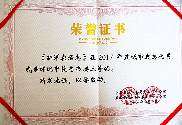 近日,在鹽城市委黨史工作辦公室、地方志編纂委員會(huì)辦公室開展的2017年鹽城市史志優(yōu)秀成果評(píng)選活動(dòng)中,榮獲志書三等獎(jiǎng)。