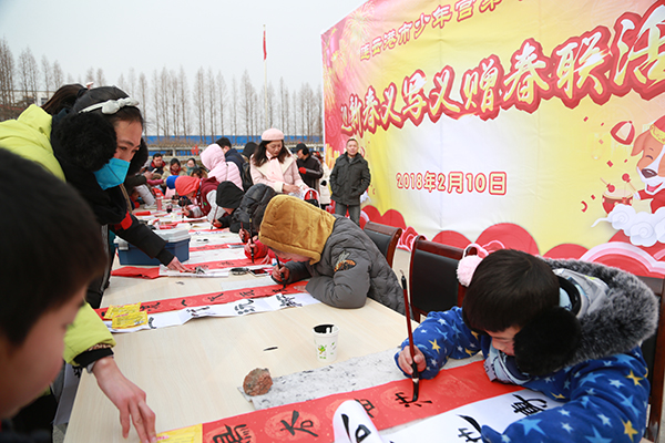 2月10日早上,由市少年宮主辦、少年宮崗埠分校協(xié)辦的“迎新春義寫義贈春聯(lián)”活動在市少年宮崗埠分校舉行。來自少年宮書法班近20名師生參加了本次活動。