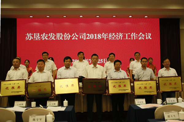 會(huì)議期間,蘇墾農(nóng)發(fā)黃海分公司、蘇墾農(nóng)發(fā)東辛分公司、蘇墾農(nóng)發(fā)臨海分公司與大華種業(yè)集團(tuán)等四家單位作了交流發(fā)言。會(huì)議隆重表彰了一批上半年工作業(yè)績(jī)突出的先進(jìn)集體,授予7家分公司2018年度“三夏”工作優(yōu)勝獎(jiǎng)、6家分公司2018年度拓展基地“三夏”工作優(yōu)勝獎(jiǎng)、3家分公司2018年度小麥高產(chǎn)獎(jiǎng)、10家分公司2018年度夏熟效益獎(jiǎng)、4家分公司2018年度拓展基地夏熟效益獎(jiǎng)。7月24日晚,還專(zhuān)題召開(kāi)蘇墾農(nóng)服工作推進(jìn)會(huì),就下一階段農(nóng)業(yè)社會(huì)化服務(wù)體系建設(shè)工作進(jìn)行了部署要求。