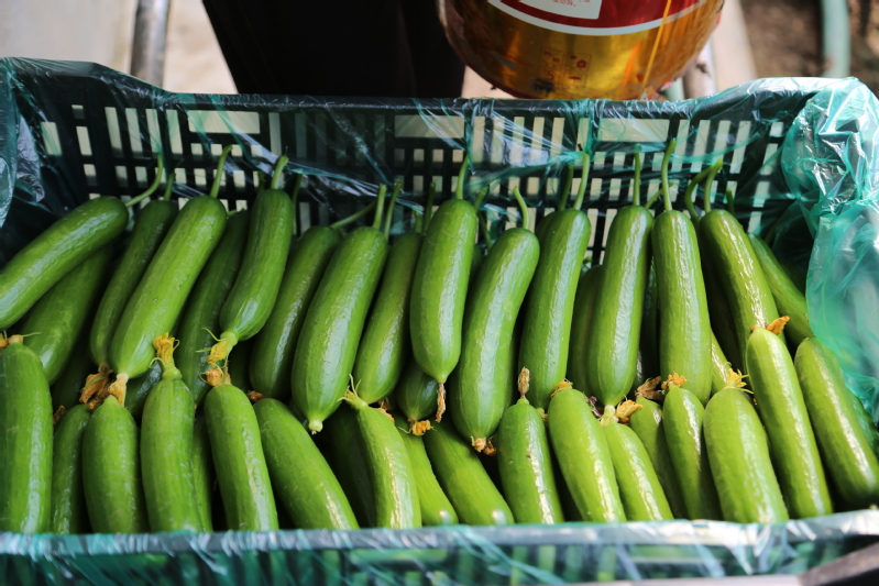 生產(chǎn)中,技術(shù)人員根據(jù)棚溫、濕度等變化規(guī)律合理進(jìn)行調(diào)節(jié),為黃瓜生長(zhǎng)提供適宜的環(huán)境,提高黃瓜的品質(zhì),經(jīng)過科學(xué)管理,目前已經(jīng)成功上市銷售。由于目前市場(chǎng)上水果黃瓜供應(yīng)較少,加之崗埠水果黃瓜品質(zhì)優(yōu)良,收到了保真超市和市區(qū)一些水果連鎖店的熱捧,訂單紛至沓來。“現(xiàn)在水果黃瓜剛上市,產(chǎn)量每天僅4、5百斤,根本不夠搶的,今天都摘了第二遍了。”崔士平一邊忙碌著,一邊說。