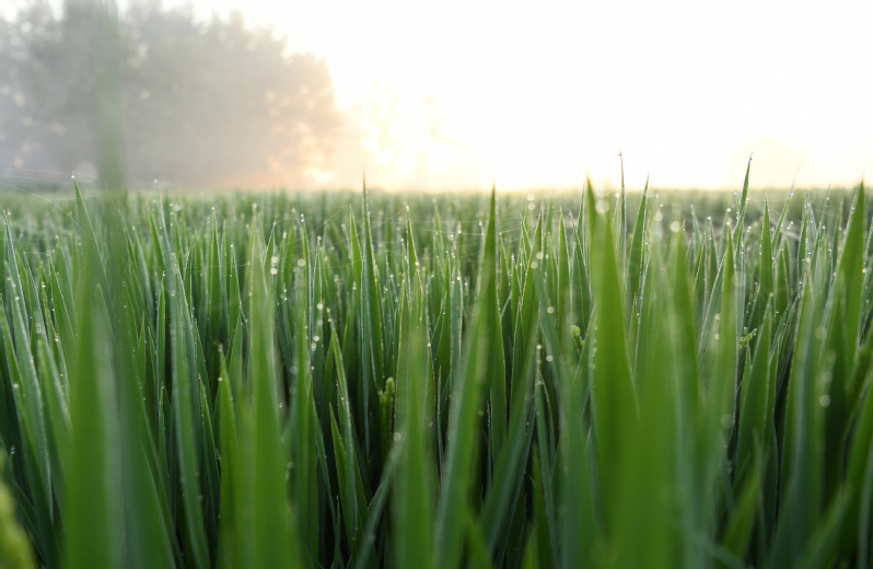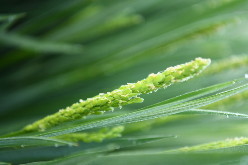 陽光下,霧氣散,空氣中彌漫著清新的稻花香。俯瞰蔥綠的稻田,如一條條綠絲帶整齊排列。晶瑩的晨露凝結(jié)在青翠的秧苗上,猶如給稻田蒙上了一層剔透的面紗。剛抽出的稻穗上,有白色的稻花點(diǎn)點(diǎn),隨著稻穗一起隨風(fēng)輕舞飛揚(yáng)。小蜘蛛也趕來湊個熱鬧,在枝葉上織起了“秋的毛衣”。