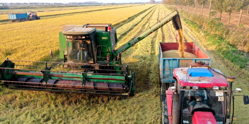 10月24日,江蘇農(nóng)墾黃海農(nóng)場11萬畝水稻迎來豐收。現(xiàn)場收割機(jī)的隆隆轟鳴,糧食運輸車輛來回穿梭,確保水稻應(yīng)收盡收、機(jī)收減損、顆粒歸倉。