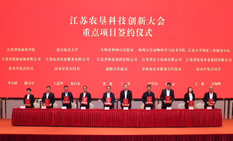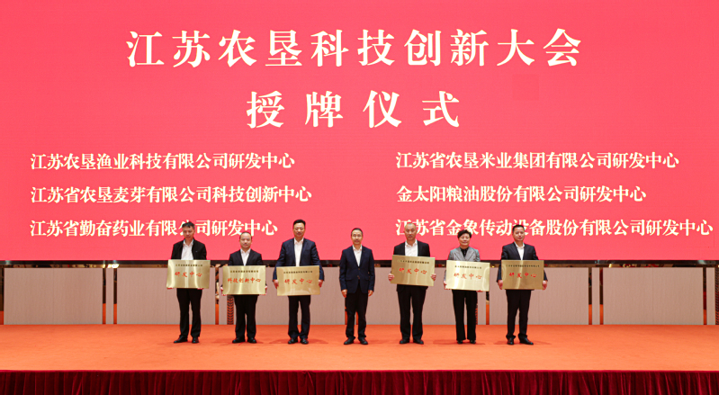 會上,吳本輝、姜建友共同為江蘇農(nóng)墾漁業(yè)科技有限公司和江蘇省農(nóng)墾產(chǎn)業(yè)技術(shù)研究院有限責任公司揭牌,吳本輝為蘇墾漁業(yè)研發(fā)中心、蘇墾米業(yè)研發(fā)中心、蘇墾麥芽科技創(chuàng)新中心、金太陽糧油研發(fā)中心、勤奮藥業(yè)研發(fā)中心、金象傳動研發(fā)中心授牌,姜建友發(fā)布江蘇農(nóng)墾2024-2025年揭榜掛帥項目榜單,生物育種鐘山實驗室、省農(nóng)科院、南京農(nóng)業(yè)大學、江南大學、揚州大學分別與集團公司所屬企業(yè)簽署重點項目合作協(xié)議。