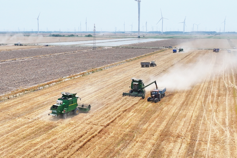 2025年5月29日,鹽城射陽(yáng)縣江蘇農(nóng)墾臨海農(nóng)場(chǎng)順泰生產(chǎn)區(qū)麥浪涌動(dòng),大型聯(lián)合收割機(jī)轟鳴作業(yè),率先拉開(kāi)當(dāng)?shù)叵氖招←溞蚰弧=陙?lái),農(nóng)場(chǎng)黨委以墾地合作推動(dòng)發(fā)展,通過(guò)技術(shù)賦能與鹽堿地改良,昔日鹽堿地蛻變?yōu)椤皣嵓Z田”,為鄉(xiāng)村振興打造國(guó)有農(nóng)業(yè)新樣板。
