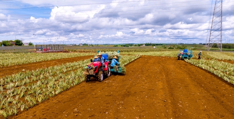 廣東農(nóng)墾友好農(nóng)場(chǎng)坐落于湛江市徐聞縣中南部,作為徐聞菠蘿國(guó)家地理標(biāo)志農(nóng)產(chǎn)品核心產(chǎn)區(qū),有著50余年的菠蘿種植史,常年保持在1.8萬(wàn)畝左右,年均產(chǎn)量超4萬(wàn)噸,產(chǎn)值近3億元。近幾年來(lái),友好農(nóng)場(chǎng)緊扣高質(zhì)量發(fā)展主線,以產(chǎn)業(yè)強(qiáng)鎮(zhèn)建設(shè)資金為杠桿,構(gòu)建起集科研育種、標(biāo)準(zhǔn)化種植、精深加工、冷鏈倉(cāng)儲(chǔ)、智慧物流于一體的菠蘿全產(chǎn)業(yè)鏈體系,助力廣墾菠蘿從地域特產(chǎn)向中國(guó)“金字招牌”跨越升級(jí)。2023年,友好農(nóng)場(chǎng)成功躋身國(guó)家第一批產(chǎn)業(yè)強(qiáng)鎮(zhèn)行列,為鄉(xiāng)村產(chǎn)業(yè)振興樹(shù)立示范樣板。