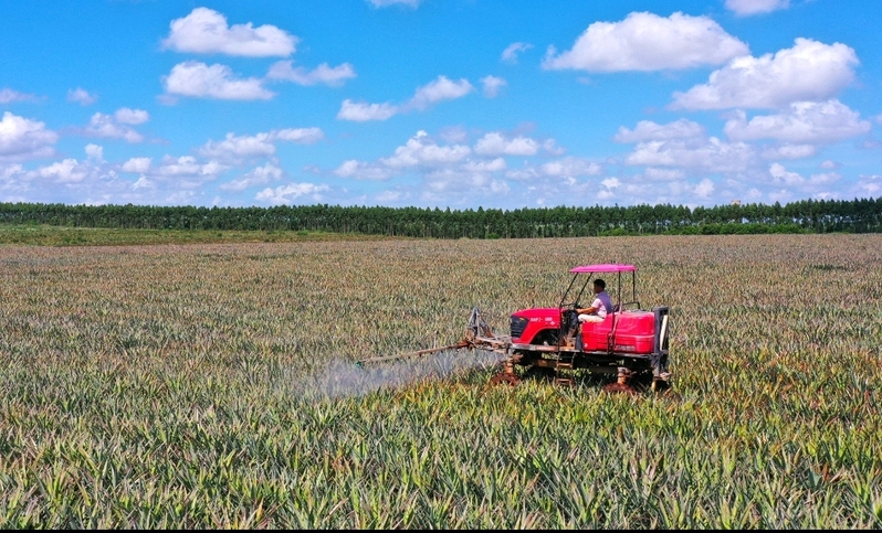 友好農(nóng)場(chǎng)的萬(wàn)畝菠蘿田處于菠蘿生長(zhǎng)黃金地帶,早期主要種植巴厘品種,占總面積的98%以上。由于種植存在品種單一、管理粗放、單價(jià)低等問(wèn)題,一度出現(xiàn)“農(nóng)戶不敢種,商人不敢收”的窘境。2021年以來(lái),友好農(nóng)場(chǎng)利用菠蘿產(chǎn)業(yè)強(qiáng)鎮(zhèn)項(xiàng)目,引進(jìn)臺(tái)農(nóng)16號(hào)、17號(hào)等優(yōu)質(zhì)鳳梨品種,篩選出果肉嫩滑、酸甜適中的臺(tái)農(nóng)17號(hào)等優(yōu)良品種,試驗(yàn)示范種植480畝,并通過(guò)GPS定位、蓋膜、電石催花、果實(shí)套袋等技術(shù)創(chuàng)新,努力攻克鳳梨管理技術(shù)難題,實(shí)現(xiàn)了畝均利潤(rùn)近3000元,讓農(nóng)戶的“傷心果”變成了“致富果”。如今標(biāo)準(zhǔn)化種植模式已帶動(dòng)30戶農(nóng)戶種植臺(tái)農(nóng)17號(hào)、芒果鳳梨、冬蜜鳳梨等新品。農(nóng)場(chǎng)計(jì)劃3年內(nèi)實(shí)現(xiàn)1萬(wàn)畝新品種示范規(guī)模,覆蓋率達(dá)50%以上。