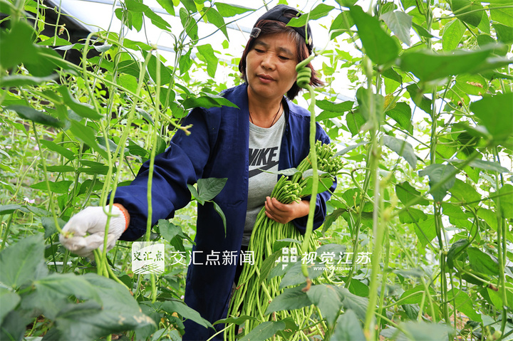 9月17日,連云港市海州區(qū)的江蘇農(nóng)墾崗埠農(nóng)場(chǎng),種植戶(hù)在溫室大棚里采收成熟的豇豆,準(zhǔn)備供應(yīng)市場(chǎng)銷(xiāo)售。徐衛(wèi) 攝 視覺(jué)江蘇網(wǎng)供圖