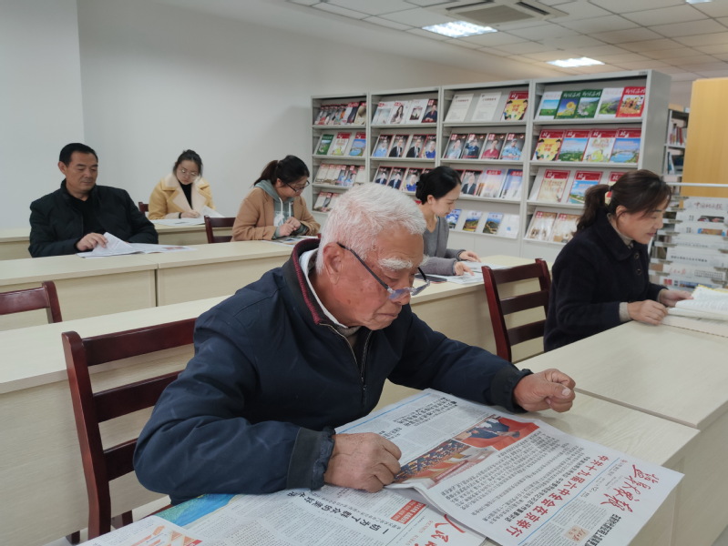 各基層黨支部即日起迅速以各種形式,掀起對六中全會精神進(jìn)行學(xué)習(xí)討論和深化吸收。淮海農(nóng)場社區(qū)充分發(fā)揮新時代文明實踐所的學(xué)習(xí)平臺地位,經(jīng)常更新并充實職工書屋的書報藏書量,引導(dǎo)職工居民緊跟時代脈搏充電學(xué)習(xí)。圖為11月12日下午,幾名職工居民第一時間在書屋內(nèi)認(rèn)真觀看刊有黨的十九屆六中全會精神的報紙。
