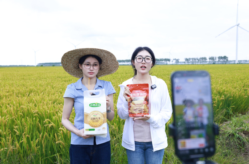 走進(jìn)東辛農(nóng)場直播間,青年主播化身為“蘇墾優(yōu)品推薦官”,憑借對產(chǎn)品的深入了解和專業(yè)素養(yǎng),以生動(dòng)形象、富有感染力的語言,熱情地向觀眾推介精心挑選的5款優(yōu)質(zhì)農(nóng)產(chǎn)品。宋巖 攝