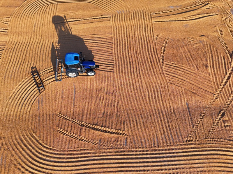 2025年10月9日,江蘇農(nóng)墾崗埠農(nóng)場,職工駕駛糧食翻曬機(jī),利用晴好天氣抓緊翻曬剛剛收獲的玉米,確保秋糧顆粒歸倉。