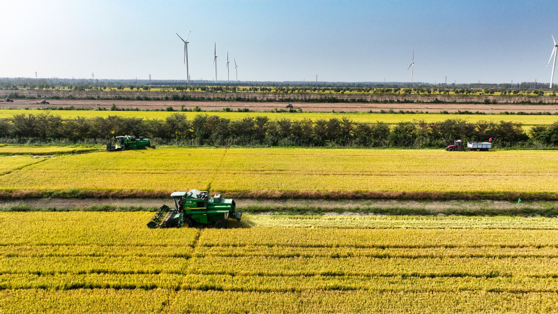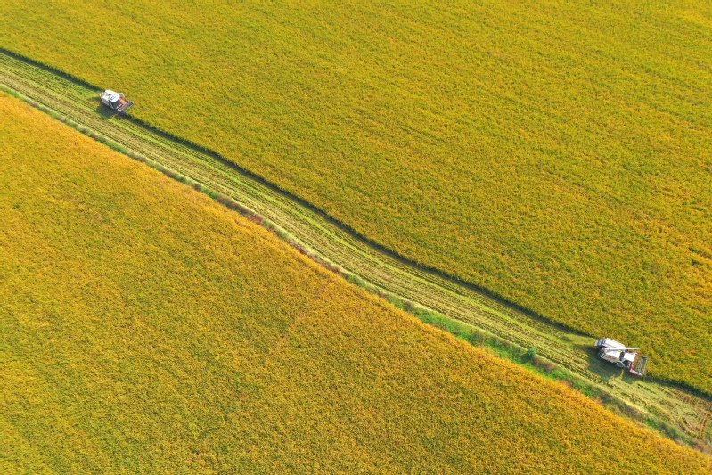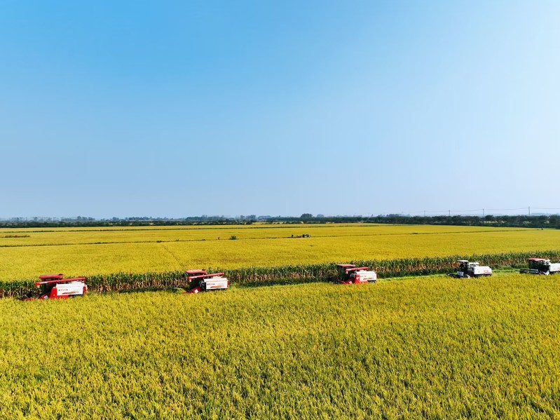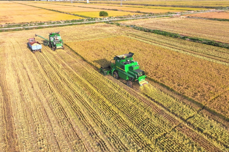 “開鐮了!豐收了!”10月17日上午10時,一臺臺聯(lián)合收割機(jī)駛向蘇墾農(nóng)發(fā)新洋分公司新北生產(chǎn)區(qū)5大隊,金黃的水稻被大型機(jī)械收入“囊”中,新洋5.3萬畝水稻機(jī)收作業(yè)正式拉開序幕。今年“三秋”是集團(tuán)公司第二次黨代會勝利召開后的第一個農(nóng)忙,做好“三秋”工作意義重大,黨委班子成員靠前指揮,深入田間查看水稻收割情況。稻田接連成片,稻穗迎風(fēng)擺動,收割機(jī)馬力全開、縱橫馳騁,收割、脫粒、裝車……一氣呵成,一派豐收的喜人景象。收割現(xiàn)場,蘇墾農(nóng)發(fā)新洋分公司嚴(yán)格收割質(zhì)量監(jiān)督,把機(jī)械減損作為糧食增產(chǎn)的重點(diǎn),加大收割質(zhì)量檢查力度,減少收割損失,實(shí)現(xiàn)秋糧顆粒歸倉。“我們密切關(guān)注天氣情況和水稻成熟度,統(tǒng)籌安排,堅持質(zhì)量第一,進(jìn)度第二,努力做到成熟一塊收割一塊,穩(wěn)步推進(jìn)收割進(jìn)度。”農(nóng)業(yè)中心負(fù)責(zé)人介紹。蘇墾農(nóng)發(fā)新洋分公司立足“前期‘揀’收、中期‘穩(wěn)’收、后期‘搶’收”的原則,充分利用秋收早期溫度高,有利晾曬、烘干的條件,適時收、曬、烘,為秋播及時騰茬,確保11月6日前完成秋播田塊收割任務(wù)。面對不穩(wěn)定天氣因素,蘇墾農(nóng)發(fā)新洋分公司強(qiáng)化機(jī)械保障,本部準(zhǔn)備收割機(jī)58臺套,運(yùn)糧車53臺,另調(diào)度好26臺小型履帶式收割機(jī),隨時應(yīng)對突發(fā)